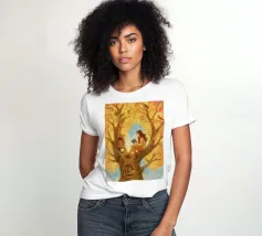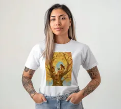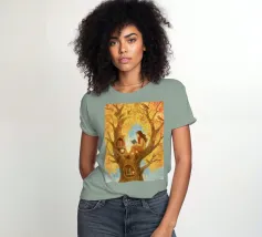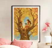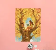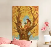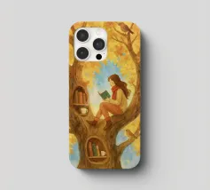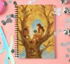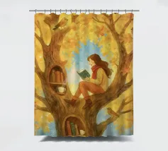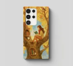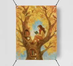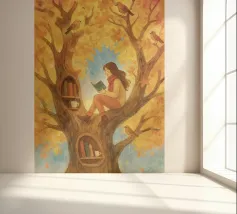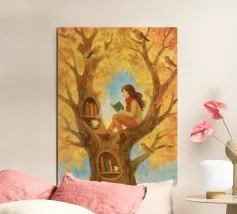 Beautiful atmosheric illustration of a girl Reading in an autumnal tree