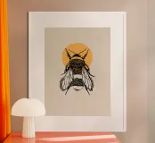 Linocut stylr design with a bee