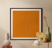 Thin Orange Lines brings a vibrant dopamine boost with its bold orange background and delicate vertical stripes. Eclectic, timeless, and modern, this design complements any home decor with a touch of joyful energy and contemporary charm.