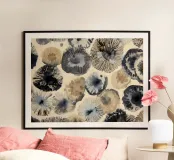 Radiating with the quiet energy of sea life, this abstract watercolor piece captures the delicate structure of sea urchins and ocean flora in deep navy, slate, and driftwood hues. A modern coastal composition with graphic rhythm and natural elegance—ideal for serene, sophisticated interiors.