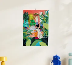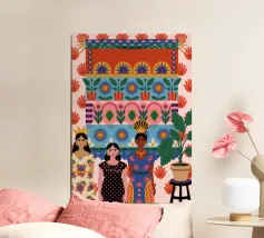 Rafaela Mascaro is a celebrated designer from São Paulo, Brazil, known for her powerful illustrations that feature natural and botanical elements. Her work seamlessly weaves women's stories into the landscape, merging human forms with organic surroundings in an evocative manner. In Mascaro's art, nature serves as |a storytelling partner, enhancing themes of femininity, resilience, and harmony. The intertwining vines, leaves, and flowers suggest a mythic unity between women and nature. Through her refine