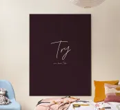 A refined minimalist typography poster featuring elegant handwritten lettering on a deep burgundy background. Intimate and expressive, the composition balances emotional intensity with clean modern simplicity. “Try One More Time” is a quiet reminder about resilience — about staying with the process even when it feels difficult. Ideal for home offices, studios, bedrooms, or contemporary interiors that embrace depth and intention. Bold. Honest. Determined.