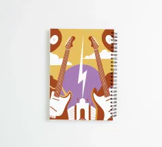 The detailed and expressive illustrations of the two guitars are beautifully captured in a stunning artistic touch.