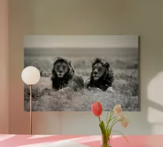 Elevate your space with the majestic beauty of lions in this striking art print, “Two Kings - Nicolas Merino”. This wooden framed piece combines exceptional craftsmanship with a stunning monochrome depiction of strength and power, perfect for animal lovers and anyone looking to add a touch of nature's glory to their walls. Measuring 15 x 10 cm, it fits perfectly in any room, be it a living room, bedroom, or office space. This print merges well with modern, rustic, or eclectic décor styles, making it a versatile choice for various settings. Ideal as a gift for wildlife enthusiasts or as a statement piece to express your passion for nature, this art print is sure to be a conversation starter. The durable frame ensures longevity, while the high-quality print captures every detail beautifully. Make your home or office a reflection of your love for wildlife with this stunning art print!