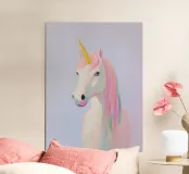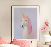 This enchanting illustration of a pink unicorn with a colourful mane perfectly captures the magic and fantasy of the fairytale world and delights children with its cute, minimalist design.