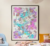 A colorful image with Unicorns