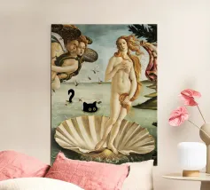 The Birth of Venus: Classic beauty in close-up" This design shows a close-up of Botticelli's iconic "The Birth of Venus", which captivates with its fine details and sleek golden strands of hair. The timeless elegance and perfect expression of Venus make this image a true work of art. Ideal for art lovers as a poster, wall decoration or for modern applications that reinterpret classic art.