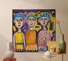 This artwork features a figure with vibrant colors, including purple, pink, and blue. The abstract nature of the painting creates a sense of vivid expression and emotion.