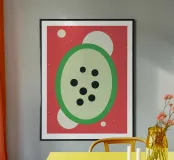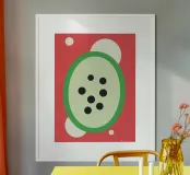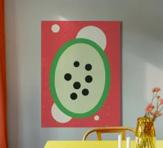 This poster shows a watermelon in a colourful, abstract design. With its childlike and minimalist approach, it brings a fresh, lively touch to any room.