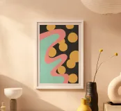 Elevate your living space with the 'Waves 21' abstract wooden framed art print by amini54. Featuring soft pastel waves and vibrant mustard circles against a dark background, this piece brings a contemporary and stylish touch to modern interiors. Crafted with high-quality materials, it perfectly complements minimalist, Scandinavian, and modern decor styles. Ideal for living rooms, bedrooms, or offices seeking a bold yet calming statement.