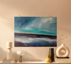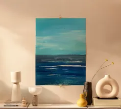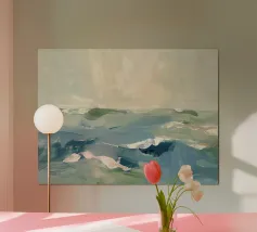 This abstract seascape captures the movement, depth and atmosphere of the ocean in a modern, timeless form. Flowing structures and nuanced colours are reminiscent of water, wind and light in transition and convey tranquillity, vastness, longing and freedom. The minimalist seascape creates a meditative mood and blends harmoniously into modern living spaces, Scandinavian interiors or minimalist furnishings. Ideal for anyone who loves abstract art, maritime motifs and timeless wall art.