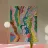 An abstract composition of flowing, wavy lines and organic shapes in a vibrant palette of green, pink, blue, and orange, creating a sense of joyful movement and rhythm.