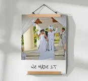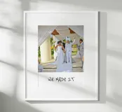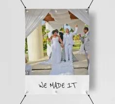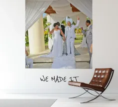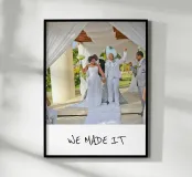 Celebrate your special day with this personalised wedding poster featuring the uplifting 'WE MADE IT' design. Perfect as a wedding gift or anniversary present, this stylish modern poster adds emotional value to your living room or bedroom. Crafted on premium quality, sustainable 200gsm matte paper, easy to personalise with names or dates, and printed in the EU.