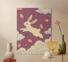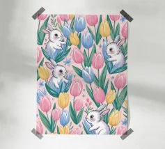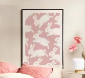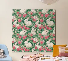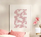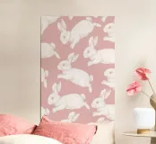 Charming white bunny illustrations on a soft pink background, perfect for cute and playful designs.