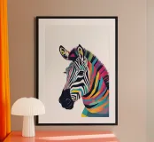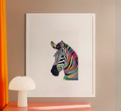 This is a vibrant and imaginative twist on the classic zebra design. Instead of traditional black and white, the zebra’s stripes explode into a rainbow of colors, symbolizing the beauty of individuality and diversity in nature. This bold and playful artwork brings the majestic zebra to life in a way that’s perfect for brightening up any space. The colorful stripes radiate energy and joy, making this print a striking statement piece. Ideal for kids' rooms, modern living spaces, or anywhere in need of a fun, lively touch. Whether it's on a wall, shirt, or home accessory.
