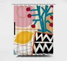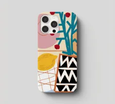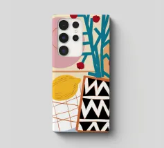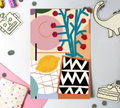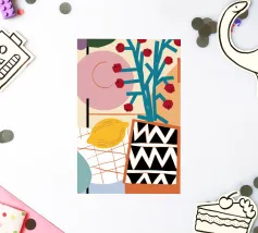 An eclectic abstract collage combines stylized lemons, red berries, and bold black and white geometric patterns, creating a zesty, energetic, and modern composition.