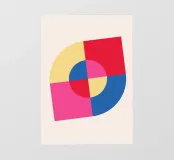 Inject vibrant energy into your space with this captivating abstract geometric art print. The design features a dynamic composition of bold color blocks and circles, creating a playful yet sophisticated visual. A large quadrant shape, split into yellow, red, blue, and hot pink, frames a central circular motif that mirrors these hues in its own divisions. This piece exudes a cheerful, contemporary vibe, perfect for adding a modern pop to any room. Produced at an impressive 7000x5000 pixels resolution and 300 dpi, this high-quality digital art ensures every crisp line and vivid color is rendered
