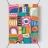 A vibrant abstract composition resembling a patchwork quilt, with various blocks of color, geometric patterns, and textures creating a lively, tactile design.