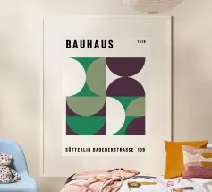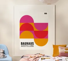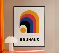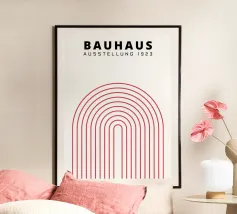 This graphically clear, abstract Bauhaus motif shows a rhythmic triangle and square pattern in strong red on a warm cream background. The strictly geometric arrangement creates an exciting balance of dynamism and order and is reminiscent of classic Bauhaus and mid-century design principles. Through the deliberate use of contrast and repetition, the pattern appears modern, timeless and architectural at the same time. The reduced colour palette lends the design calm and strength without losing expression. Ideal as a wall mural for living rooms, design posters, modern wall art.