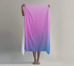 A colorful abstract background features a smooth gradient transitioning from pink to blue, enhanced with tiny sparkling elements, perfect for artistic design and wallpaper use.