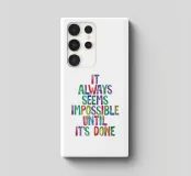 Add a burst of positivity to your space with this vibrant typography art print, featuring the phrase "It Always Seems Impossible Until It's Done" in hand-painted rainbow watercolour lettering on a crisp white background. The unique blend of bright colours and artistic craftsmanship creates a cheerful and inspiring focal point for any room. Perfect as a thoughtful gift for friends, family, or yourself, it suits occasions like birthdays, housewarmings, or simply spreading joy. Designed to uplift and motivate, this print is a stylish addition to home offices, living rooms, or creative spaces