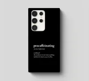 Embrace your coffee addiction with our witty "Procaffeinating" typography art print. This clever design presents a humorous definition in crisp white text on a sleek black background, mimicking a dictionary entry. Perfect for coffee lovers and procrastinators alike, it adds a touch of relatable humor to any kitchen, office, or café. The stark contrast and formal typography style create a visually striking piece that's both amusing and stylish. Available on various products, this versatile design makes an ideal gift for anyone who can't function without their daily brew.