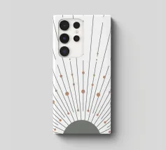 This stylish design combines radiating lines and subtle dots in earthy colours such as brown, green and black, which emanate from a central shape. The minimalist aesthetic gives the motif a modern and harmonious look. Perfect for wall murals, mugs, cushions or mobile phone covers, this design adds an artistic and timeless atmosphere to any room. Ideal for lovers of boho style and modern, creative interior design ideas - also an inspiring gift idea.