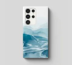 Gentle curves of blue and peach create a soothing abstract pattern that evokes a sense of peace and relaxation. This design is perfect for modern decor.