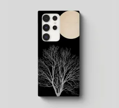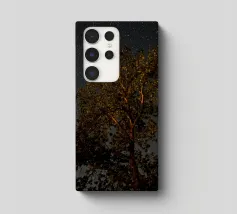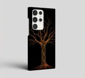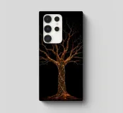 A beautifully detailed tree with intricate branches lit up by shimmering lights, creating an enchanting effect against a stark black background, perfect for enhancing mobile device aesthetics.