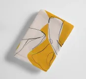 An abstract artwork of dancing female figures outlined in black on a vibrant yellow background, expressing rhythm and movement in a minimalist style.