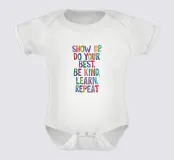Embrace growth with this vibrant typography art print. "Show Up Do Your Best Be Kind Learn Repeat" comes alive in rainbow watercolour lettering on white. It's an engaging piece radiating positivity, perfect for offices, bedrooms or studies. A colourful reminder of self-improvement, it brightens any space and prompts positive habits. Let this print inspire consistent effort, kindness and learning in your daily life.