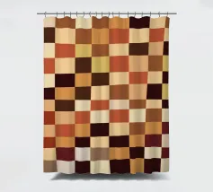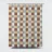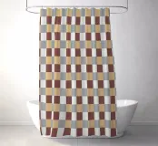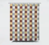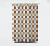 A pattern of alternating colored squares creates a checkerboard effect with shades of beige, gray, and brown. The grid-like design is symmetrical and evenly spaced.