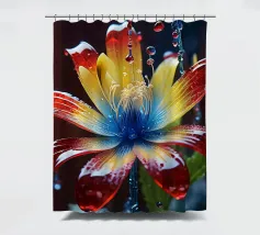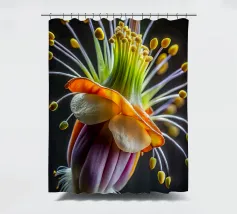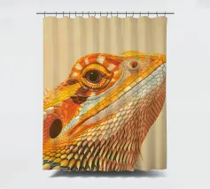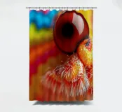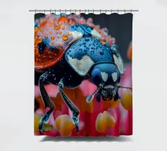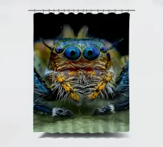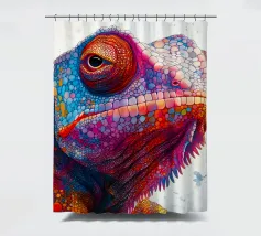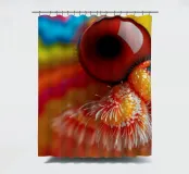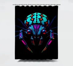 A striking close-up reveals a vibrant creature adorned with colorful patterns and intricate details. The design features a prominent eye and delicate textures