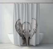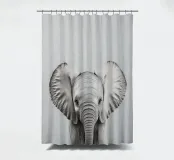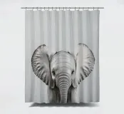 A cute portrait of a baby elephant with big eyes in a minimalist black and white illustration that captures the charm of nature.