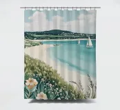 A serene coastal scene with turquoise waters, blooming flowers, and sailboats. Perfect for adding peace and charm to any space.