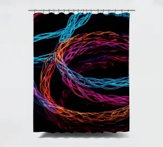 Colorful waves of light flow across a dark background, blending vibrant shades of blue, pink, and orange in an abstract design ideal for modern digital art applications and backgrounds.