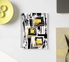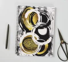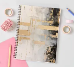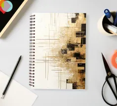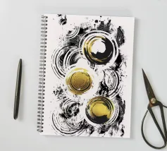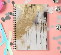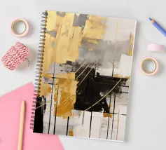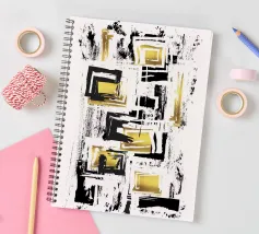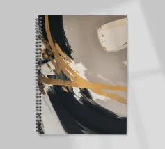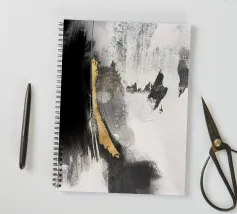 Modern abstract graphic design with a touch of elegance. Experimental vector painting with different brushes in black and white with golden highlights. Dynamic and very appealing contemporary design.