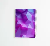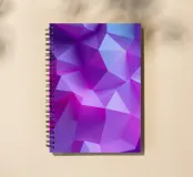 Vibrant abstract composition showcases a blend of purple and blue hues, forming sharp geometric shapes and smooth transitions that create depth and movement.