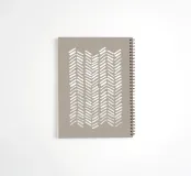 Modern abstract design featuring repeating columns of white, angled lines arranged in a chevron-like pattern against a beige background, creating a visually striking and dynamic effect.