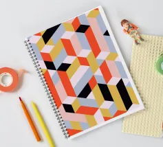 A visual powerhouse of form and colour: this poster is reminiscent of the Op Art style of the 1960s, combined with the rhythm of Bauhaus design. Cubes and prisms interlock to create a vibrant mosaic of warm colours such as yellow, red, orange and petrol. The complex three-dimensional illusion creates depth and movement - a clear statement for creative spaces that perfectly combines architectural thinking and modern aesthetics.