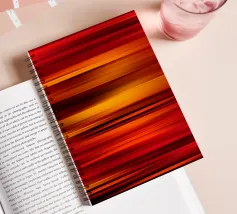 The picture shows dynamic and upward waves and patterns in the colours orange and red.