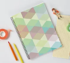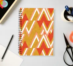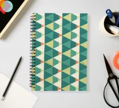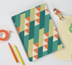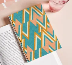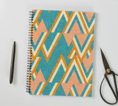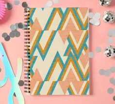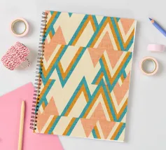 Add a touch of dynamism and retro style to your everyday objects with this bright geometric pattern. Alternating zigzag shapes, triangles and vibrant colours (emerald green, mint, coral and off-white), this design evokes the graphic trends of the 70s while retaining a contemporary touch. Perfect for fans of modern patterns, vintage design or bold decoration. This design is perfect for notebooks, phone covers, clothes, cushions or wall prints, bringing a unique visual energy to any medium.