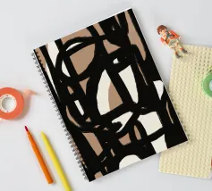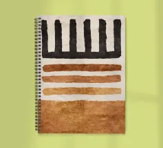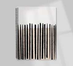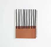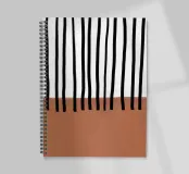Modern abstract design featuring evenly spaced vertical black lines extending over a solid brown rectangular area, creating a striking contrast and dynamic visual effect.