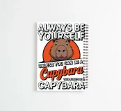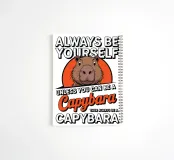 A cute capybara illustration surrounded by motivational text. The words encourage individuality with a humorous twist, highlighting the charm of capybaras.