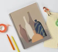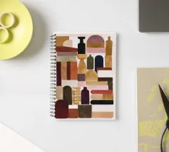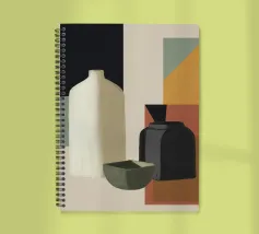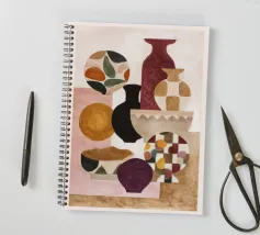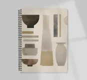 Minimalist illustration with vases, bowls, and geometric shapes arranged in a clean square composition. The natural beige and earthy hues make it a versatile print for modern, scandinavian or boho interiors.