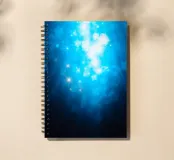 Deep blue hues create a calming backdrop filled with sparkling light effects. T