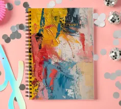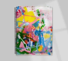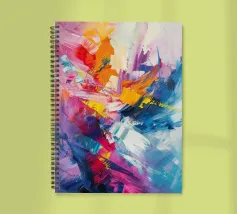 Vivid colors blend together in dynamic shapes, creating a joyful and energetic composition. The assortment of hues offers a striking visual experience filled with movement.