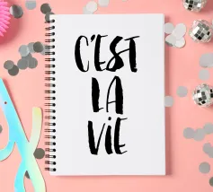 Embrace life's journey with this captivating "C'est La Vie" art print. The French phrase, meaning "Such is life," is rendered in bold, undulating typography in vibrant shades of green and purple, creating a dynamic, almost hypnotic effect. The letters are intertwined with playful organic shapes and subtle star accents, all set against a soft, complementary background. This piece captures a sense of philosophical retro psychedelia, perfect for adding an introspective and stylish touch to any space. This high-quality digital art is presented in a stunning 7000x5000 pixels resolution at 300 dpi,