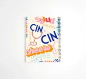 Raise a glass with this joyful and retro-inspired artwork celebrating global toasts! Featuring the word “Cheers” in a mix of vibrant languages Cin Cin, Kanpai, Salute, Proost, Salud this colourful design is set in a bold palette of bright blue, red, pink, and orange on a soft ivory background. Decorative details like stars, colourful checkered borders, and two minimalist wine glasses in keyline style add a playful vintage twist. Perfect for kitchens, bars, cocktail corners, or even recipe books and tea towels, this piece brings good vibes, good company, and a splash for good times!