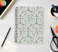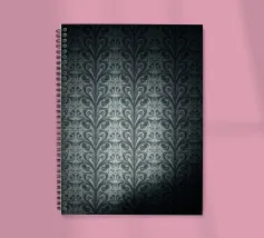 This setting showcases elegant wallpaper featuring a detailed floral and damask pattern in soft silver and grey tones, perfect for enhancing any room's decor.